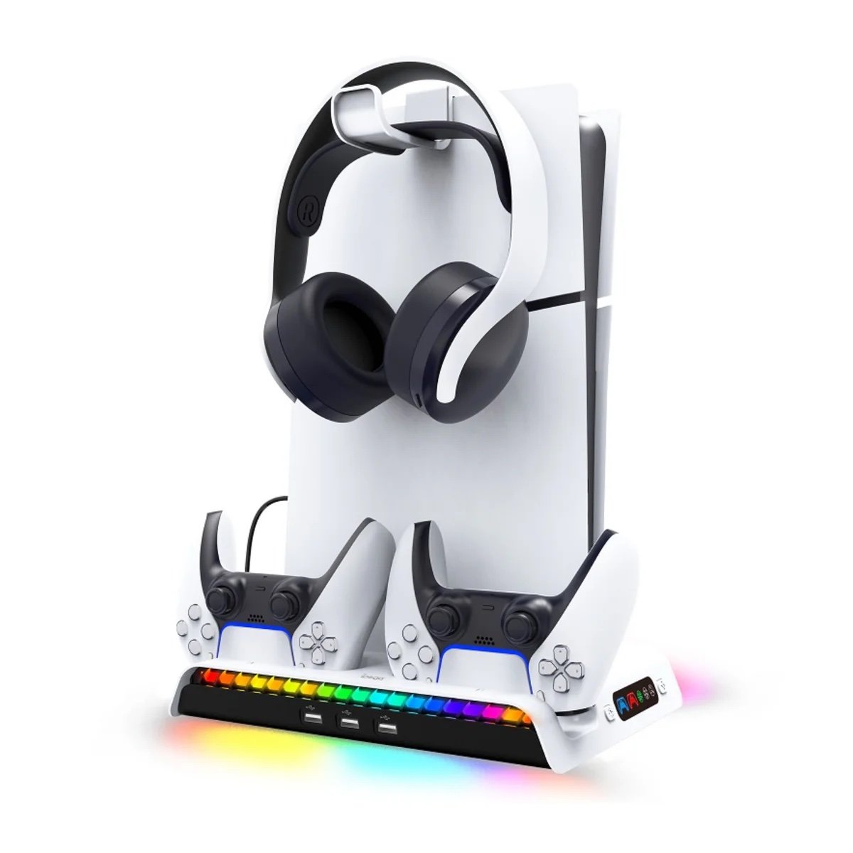 IPEGA RGB Horizontal Cooling Stand with Charging Station & Headset Holder For PS5 Slim & Pro