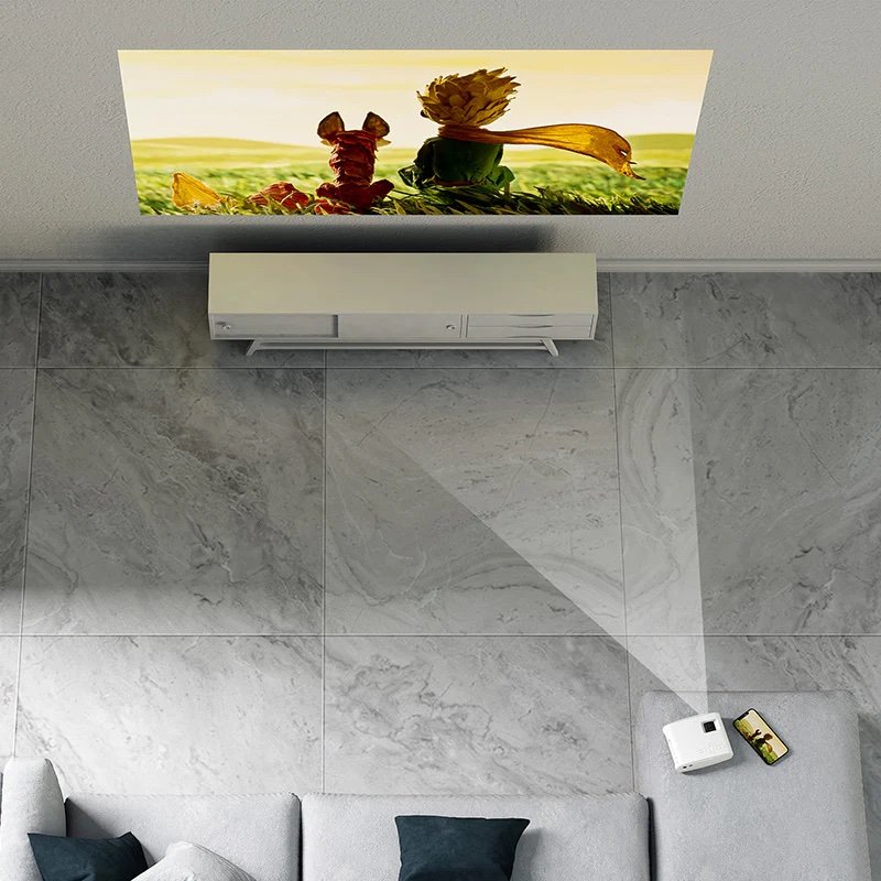 It uses the latest WIFI smart phone screen synchronization display technology. You can easily connect your iOS/Android device to WIFI and don’t need extra adapters. And then video of smartphone will sync with projector.