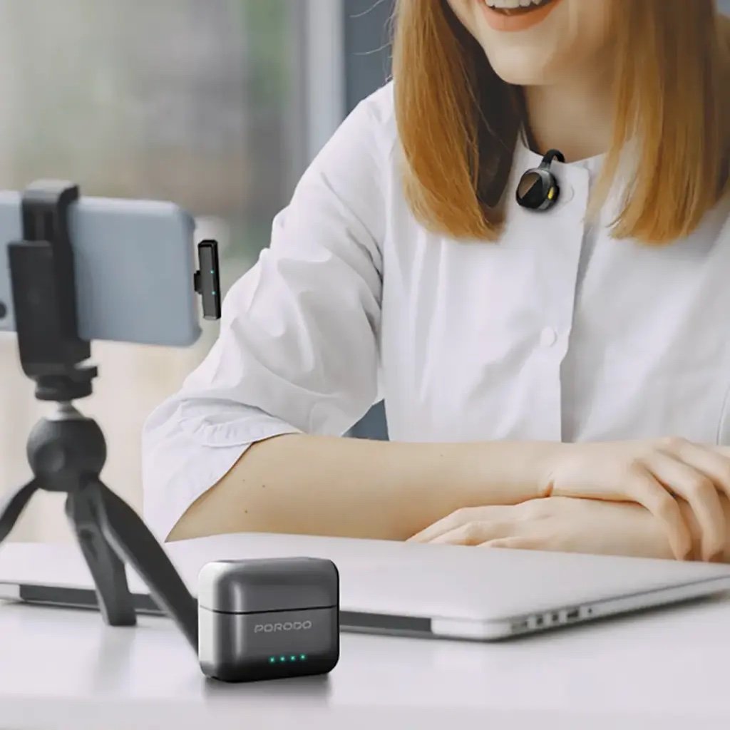 This Porodo Movo Lavalier Microphone with Type-C Connector is all about supreme audio on the go. Made to be used with any smartphone, tablet, or other device with a Type-C connector, the microphone itself guarantees crystal-clear sound with thorough reliability. Reverb sounds very right to the ears, with the audio flowing uninterruptedly through the wires from one end to the other, without any disturbance. The mic does away with lots of setup and pairing inconveniences. One could stuff themselves in creativity while thin-airing recording setups. When needed, this microphone works for five hours on a full battery, perfect for long recording sessions, interviews, or podcasting. It sports a win-some, lose-some tagline: For its diminutive and featherweight housing, it offers easy portability; for its 15 meters in transmission range, clear audio is in store even from afar. From content creation to video recording and interviews, the Porodo Movo Lavalier Microphone will come to your aid to provide you with professional-grade audio.