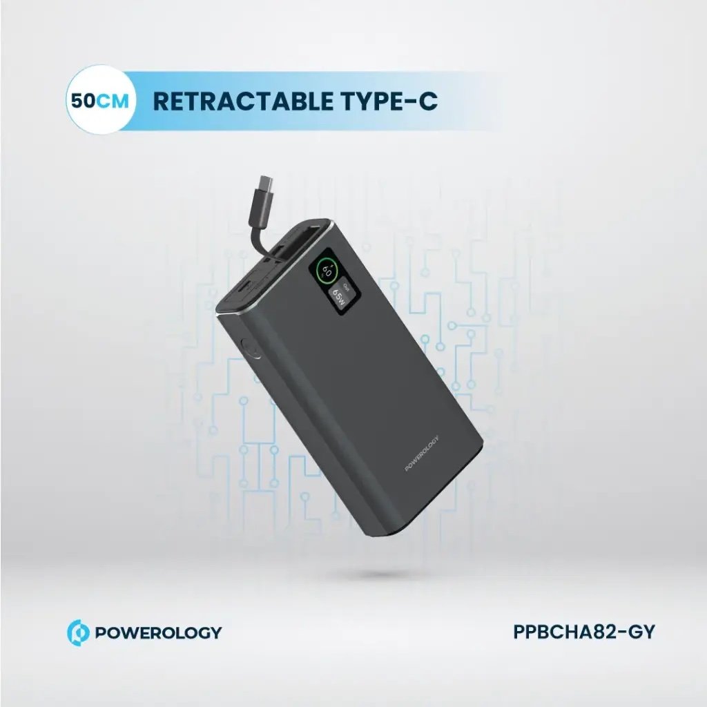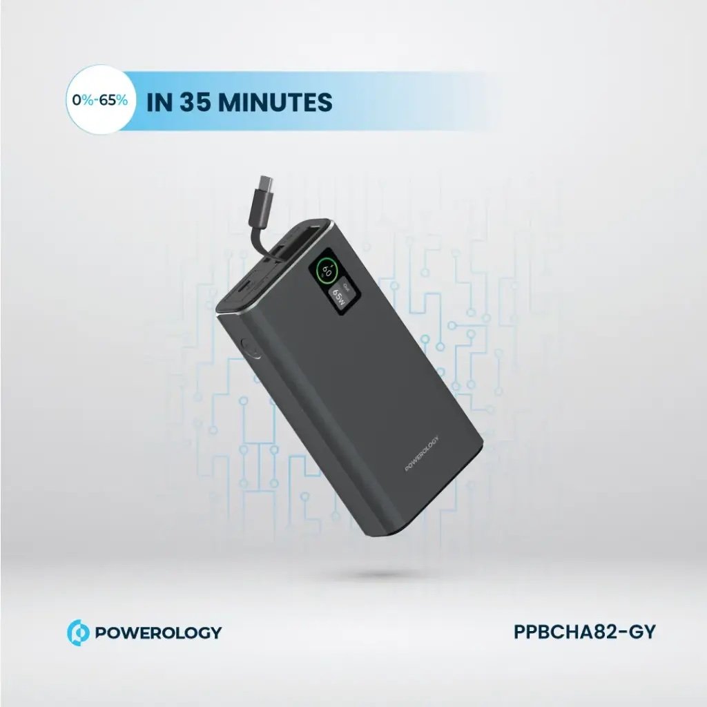 The Powerology Aluminum 20000mAh Power Bank is a strong and adaptable power supply to charge devices anywhere. A massive 20000mAh battery packs inside, giving it the ability to power smartphones, tablets, and laptops reliably. With USB-C input/output and 65W Power Delivery, this power bank easily charges laptops and does self-refueling quickly, hitting 65% charge in just 35 minutes. On the other hand, the USB-A output allegedly offers 30W power, enough for fast charging. Its 50cm fixed cable, along with different ports, makes this power bank capable of charging three devices simultaneously, proving quite handy during travel or everyday usage. Sleek with aluminum casing for protection with an intelligent power display showing power left in the batt. Having flexible voltage in the USB-C and USB-A port lines, the Powerology 20000mAh Power Bank is your ultimate portable power companion that will always speed you through convenience and style anywhere.