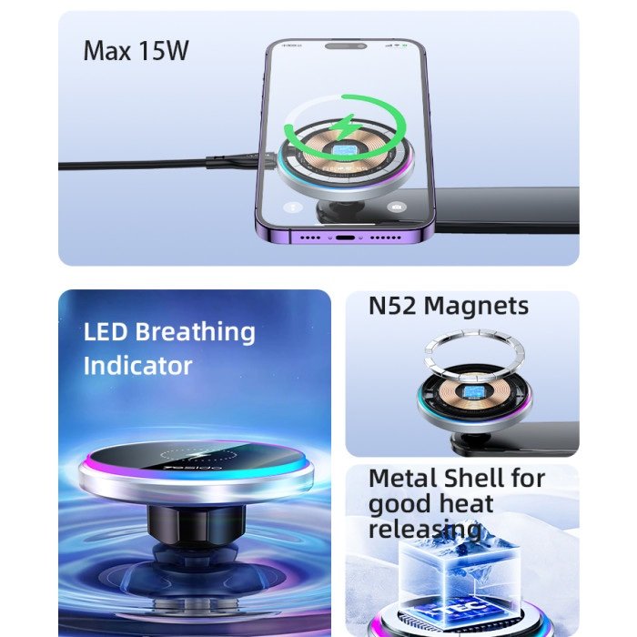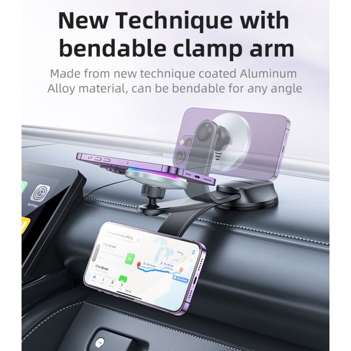 C292 360 Free Rotating LED Breathing Indicator Light Max 15W Fast Charging Wireless Phone Holder.